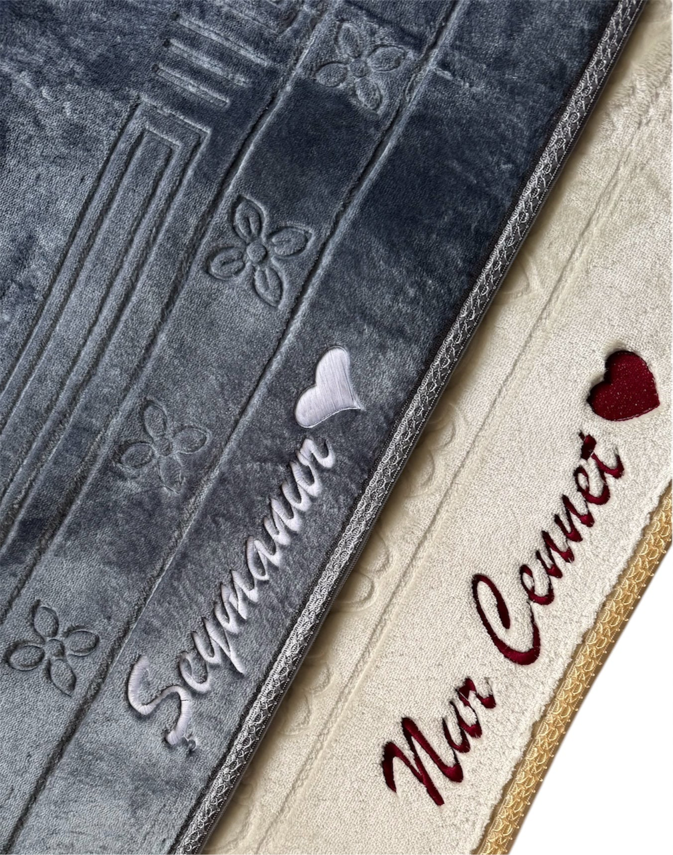 Perosnalisierte Gebetsteppiche werden häufig aus hochwertigen Materialien wie BAumwolle, Polyester oder Mischgeweben gefertigt, um Komfort, Langlebigkeit und ein angenehmes Gefühl während des Gebets zu gewährleisten.